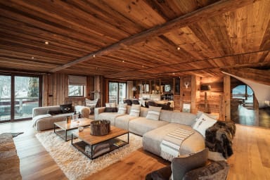 Exclusive to Propriétés Autentik: Belmont. RATES AND AVAILABILITY ON REQUEST ONLY. Belmont, an exceptional 3,330 sq ft chalet combining luxury, eco-friendliness, and comfort. With breathtaking views of Mont Blanc, 50 meters from the ski bus and in the heart of Combloux, this passive energy chalet offers 5 en-suite bedrooms, high-end amenities, 6 parking spaces, and ample space for 12 people.