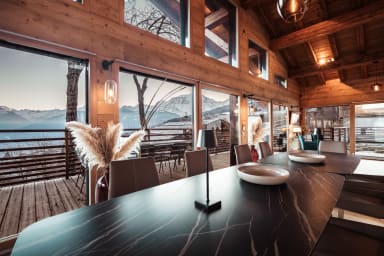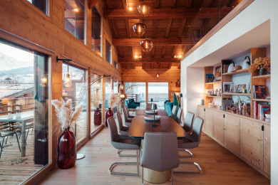 Découvrez Chalet Nomade, un havre authentique et moderne face au Mont-Blanc. Avec ses 220 m² sur trois étages, il accueille jusqu’à 10 personnes dans un cadre magique. Grand séjour lumineux, cheminée, balcon panoramique et prestations para-hôtelières : l’adresse idéale pour un séjour inoubliable en famille à Combloux.